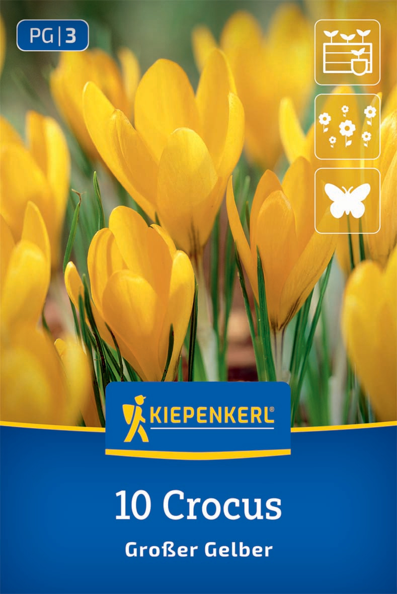 'Großer Gelber' wird bis zu 10 cm hoch und ist dadurch auch gut für Kübel und Kästen geeignet. Er blüht von März bis April und verwildert im Garten auch sehr gut, sodass Sie sich auch in den nächsten Jahren noch über den wunderschönen Krokus freuen können.